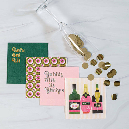 Retro Groovy Floral Pink and Green Cocktail Beverage Napkin