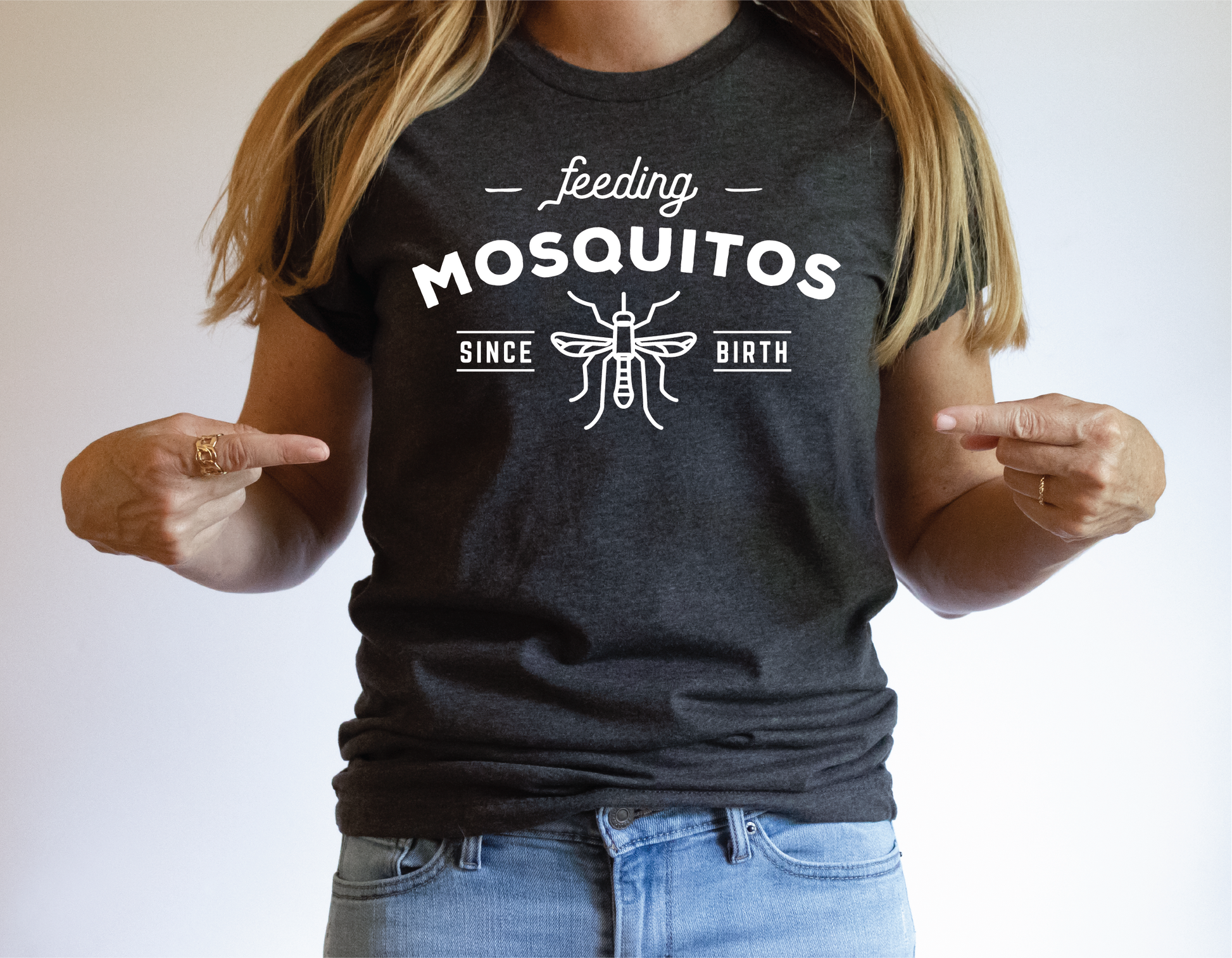 Did you know there are over 3,700 types of mosquitos found worldwide, and they can bite day or night?? One of our best sellers, this "Feeding Mosquitos Since Birth" shirt makes light of the never-ending nuisance that is this little pest.