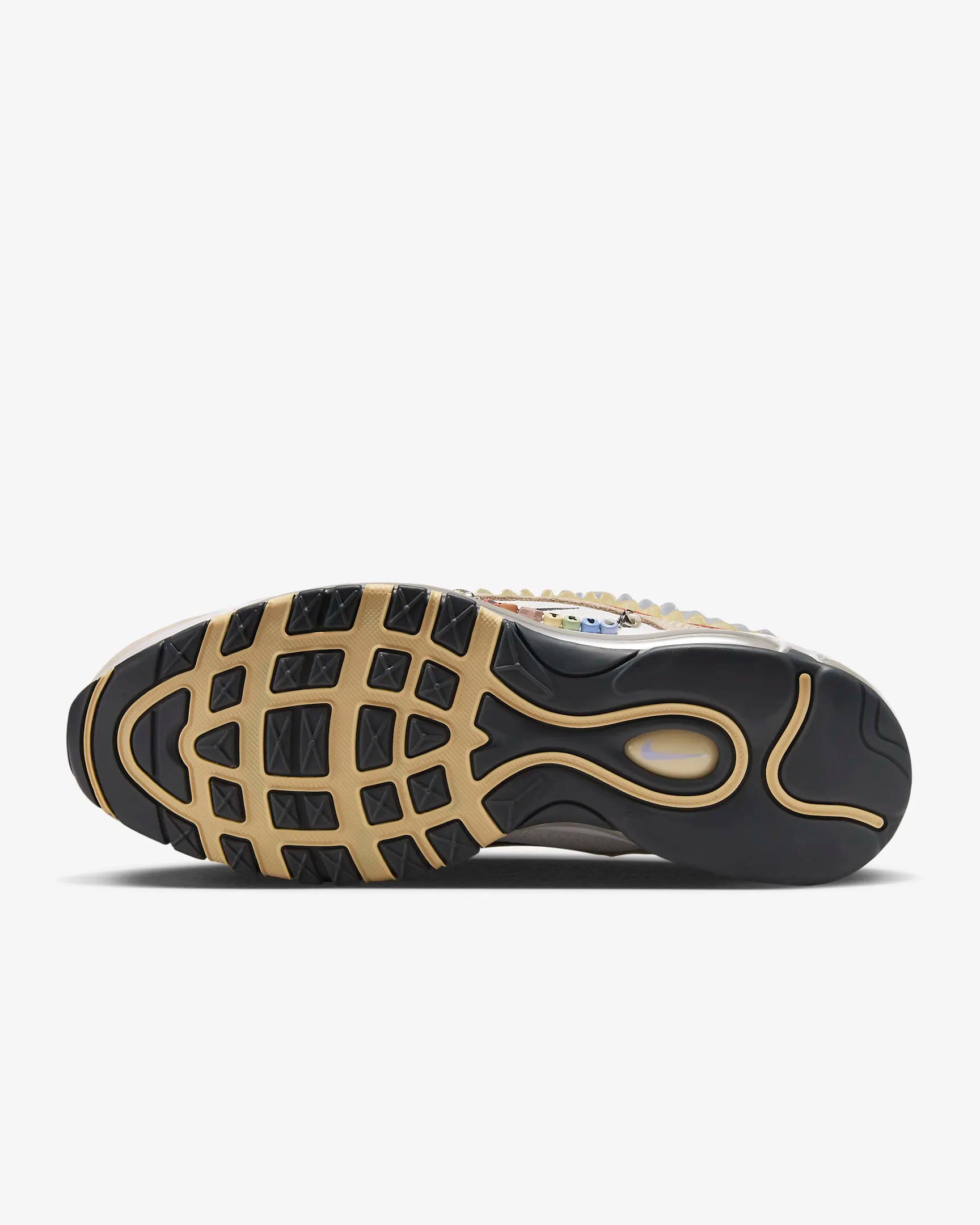 Express yourself with the Air Max 97. The icon gets a game-changing new look with shimmering, delicate lace. Inspired by fluidity of expression, the remixed classic dons ruffle patterns to enhance the original ripple design. Nostalgic hues pull inspiration from Pride flags while incorporating a vintage flair as a nod to LGBTQIA+ history and the trailblazers that paved the way for generations to come. Removable charms and a customizable tongue let you own your look, showing what "Be True" means to you with every step.